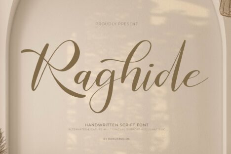 Raghide Script Font, from Gracetypestudio, suitable for any projects such as: logos, branding projects, homeware designs, product packaging, mugs, quotes, posters, shopping bags, t-shirts, book covers, name card, invitation cards, greeting cards, label, photography, watermark, special events, and all your other lovely projects that need a beautiful script taste.